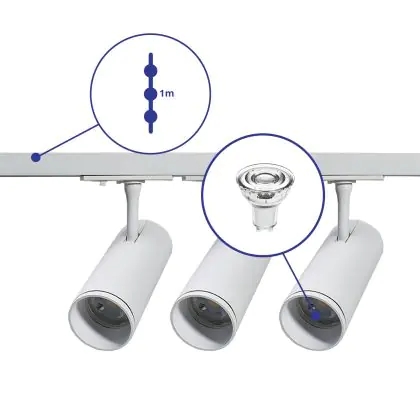 | Fabrikantnaam | Complete Straight 1-meter 1-Phase Track Set White incl. 3x Spot fixture + GU10 2700K 3W Dim – 1 Mete | |