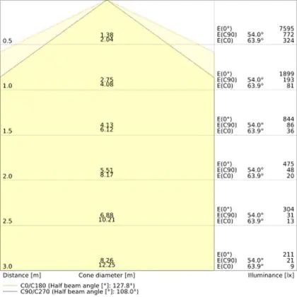 De lichtopbrengst (Lumen), geeft weer hoe krachtig het uitgestraalde licht is. Dit is belangrijk om te weten om de juiste sfeer te creëren. 0 tot 400 Lumen is bij uitstek geschikt voor accent- of sfeerverlichting. Een hoger aantal Lumen is, afhankelijk van de grootte van de ruimte, beter geschikt als ondersteunende- of basisverlichting. Heb je plafonds hoger dan 4 meter, dan is een lichtopbrengst van minimaal 8000lm aan te raden indien heldere verliching gewenst is (vb. in werkomgevingen).